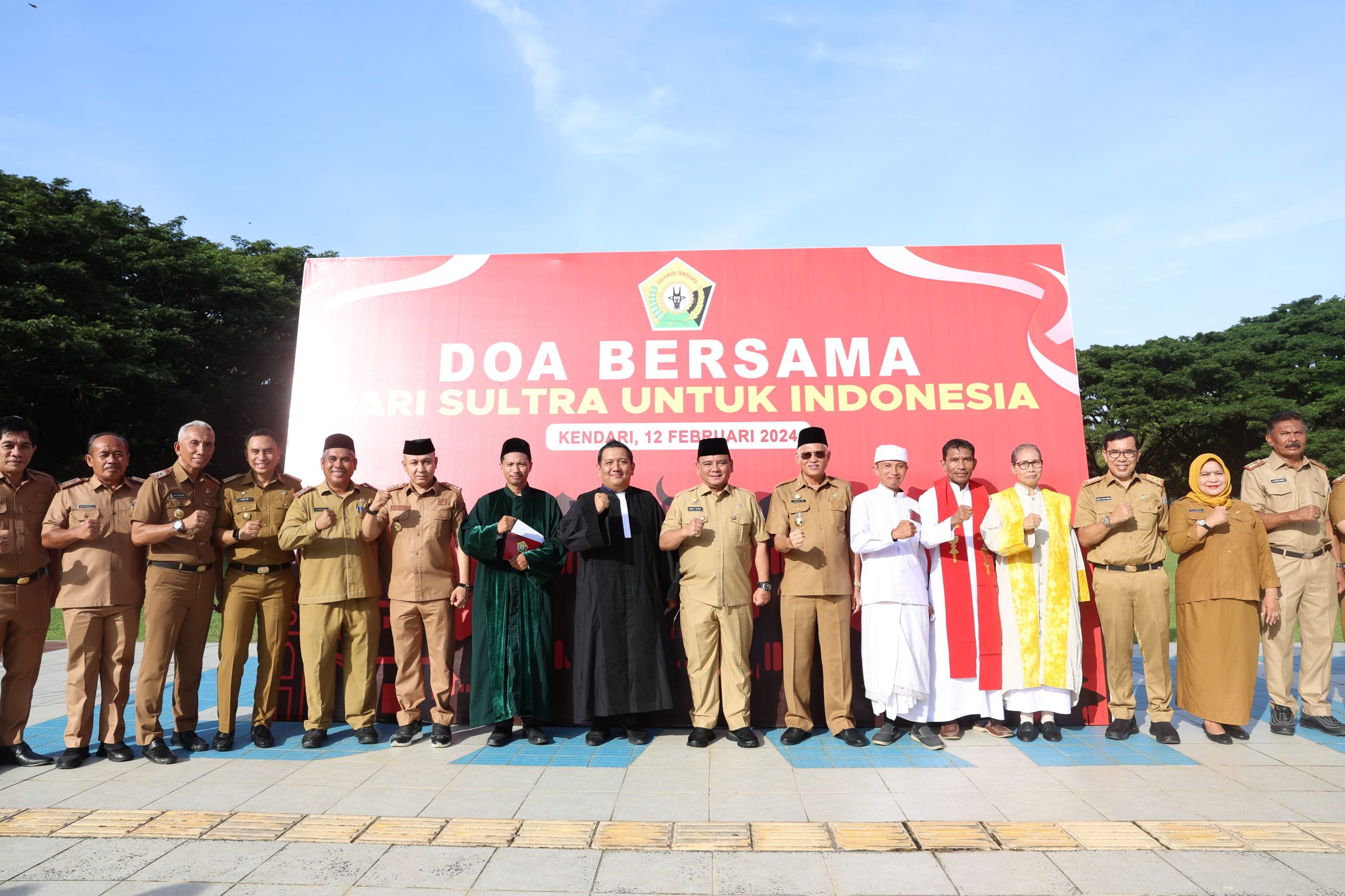 MEDIATAMASULTRA.COM, KENDARI – Pemerintah Provinsi (Pemprov) Sulawesi Tenggara (Sultra) menggelar acara doa bersama dari Sultra untuk Indonesia yang dipimpin oleh lima Pemuka Agama, bertempat di Kantor Gubernur, Senin (12/02/24).